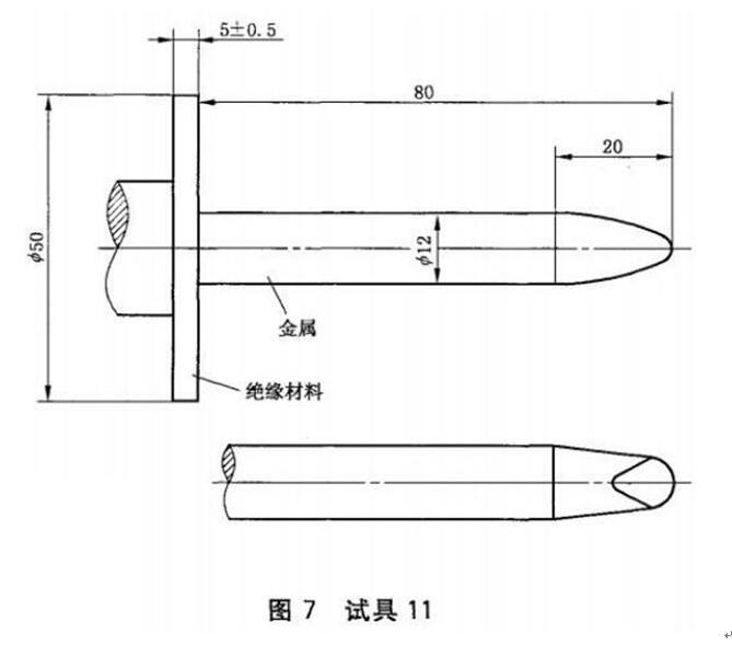 符合IEC61032圖7試具11、GB/T16842試具11、GB8898、IEC60065、IEC60598、GB7000、IEC60335、GB4706等標準要求。不帶關節(jié),在測試中模擬手指,主要用于施加外力的情況下防止手指接近危險帶電部件的測試,也可用于檢驗外殼的孔或外殼內(nèi)部擋板的機械強度。