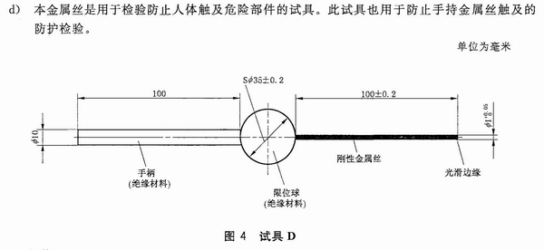 D型試驗(yàn)探針是滿足IEC61032&GB16842等標(biāo)準(zhǔn)要求,用于防止手持金屬絲觸及的防護(hù)檢驗(yàn)。